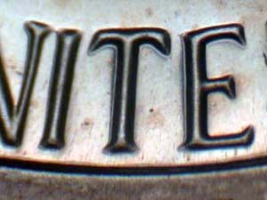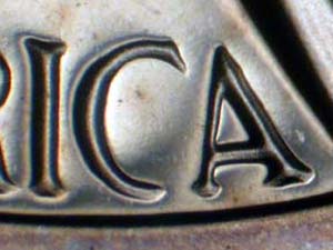 Description: Light spread on E PLURIBUS UNUM and UNITED STATES OF AMERICA increasing from Left to Right. Reported by: Timothy Wissert Comments: |