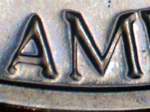 Description: Light spread with medium extra thickness on E PLURIBUS UNUM, UNITED STATES OF