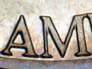 very light spread on OF AMERICA increasing from Left to Right. Reported by: Timothy Wissert Comments: Reverse is RDV-005 (weak railings). |