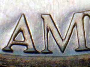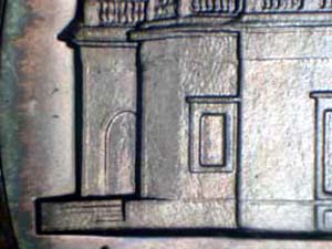 Description: Strong extra thickness on E PLURIBUS UNUM and Right building edge with