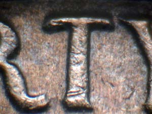 | Die Chip on Left Arm | LO of LOUISIANA | Die Gouge on P of PURCHASE | ||||||||||||||||||||||||