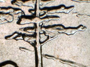 | Die Gouges under DE Designer's Initials | Die Scratch under NU of UNUM |