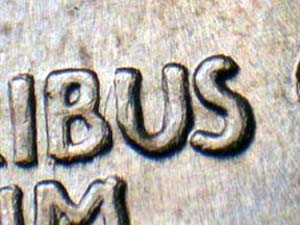 Description: Medium spread on STATES OF AMERICA, BUS of PLURIBUS, UM of UNUM, and E of DIME. Reported by: Joe Miller Comments: |