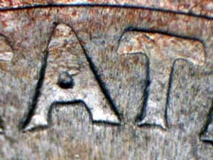 Description: Light spread on AMERICA, ONE DIME< UNITED, E PLU of PLURIBUS, and UNUM. Reported by: Delma K. Romines Comments: Obverse is ODV-001. Reverse is MMS-001 (Trumpet tail). |