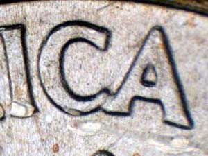 Description: Light spread on DIME, RICA of AMERICA, and NUM of UNUM. Reported by: Unknown Comments: Obverse is ODV-001. Reverse is LISTED as RPM-009 and MMS-001 (Trumpet tail). |