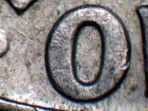 Description: Medium spread on all outer rim lettering. Reported by: Richard Bateson, Timothy Wissert. Comments: Stage A Obverse is ODV-00? (? 9). Stage B Obverse is ODV-011 (blunt 9). |