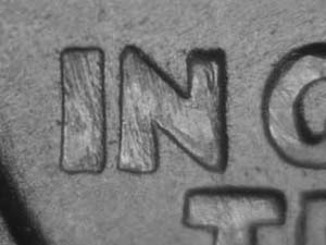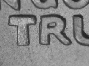 Description: Light spread on the lower letters of GOD, WE, and UST of TRUST. Reported by: ZAP's Coins Comments: |