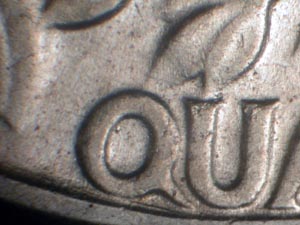 | Die Crack through RIBUS of PLURIBUS | Die Crack from Wing to Q of QUARTER | Die Crack through QU of QUARTER | ||||||||||||||||