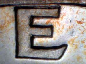 Description: Medium spread on IN, TRUST, date, designer's initials, and ribbon end. Reported by: Michael L. Ellis Comments: Proof. |