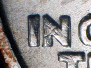 | Die Crack on Forehead and in Hair | Die Crack across Bust | Die Crack down Right Wing | ||||||||||||||||||||