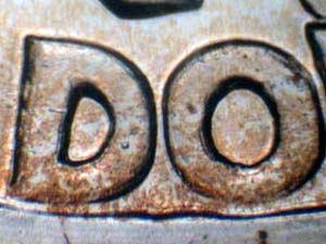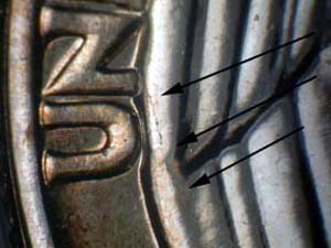 Description: Medium spread on QUARTER DOLLAR, stem ends, lower wings, and AMERICA. Reported by: Chris Pilliod Comments: Can be found in small date sets. |