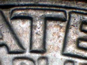 Description: Medium spread on STATES with light spread on UNITED, OF AMERICA, QUARTER DOLLAR and very light on E PLURIBUS UNUM. Reported by: Ron Pope Comments: FS-803. |