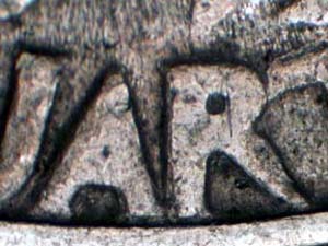 Description: Strong spread on UNITED STATES OF AMERICA, E PLURIBUS UNUM, QUARTER DOLLAR, and lower leaves and branches. Reported by: Roger M. Gray Comments: Reverse is RDV-005. FS-801. |