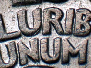 Description: Medium spread on UNITED STATES OF AMERICA and E PLURIBUS UNUM, with light spread on QUA of QUARTER, Left stem, and arrow points. Reported by: Dan Marion Comments: Reverse is RDV-005. |