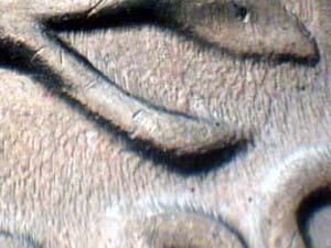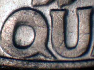 Description: Strong extra thickness on UNITED STATES OF AMERICA and E PLURIBUS UNUM. Reported by: Timothy Wissert Comments: Reverse is RDV-006. |
