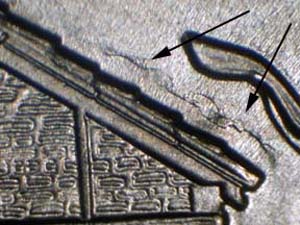 | Depression along Upper Left Roof | Long Depression with Die Chip along Lower Right Roof | |||||||||||||||||