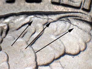 | Die Crack under Back Talons | Die Crack from R of DOLLAR | Die Crack on Outside of Wing | ||||||||||||||||