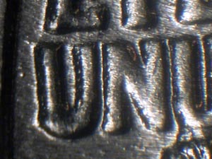 | UN of UNUM | UM of UNUM | Die Gouge under Ground Line | ||||||||||||||||