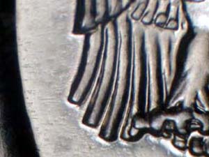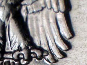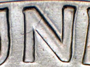 Description: Medium spread on E PLURIBUS UNUM with extra thickness on UNITED STATES OF AMERICA. Reported by: Timothy Wissert Comments: Reverse is RDV-002. |