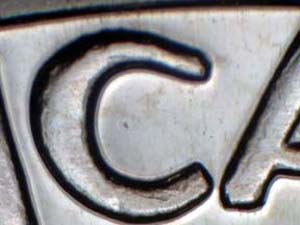 Description: Medium spread on eagle with extra thickness on STATES OF AMERICA. Reported by: Timothy Wissert Comments: |