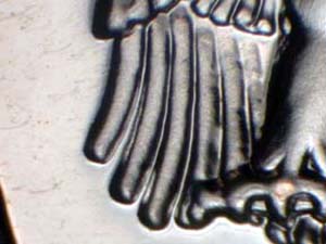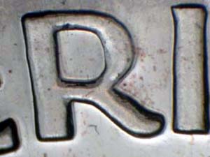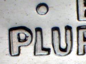 Description: Medium spread on HALF DOLLAR and AMERICA, and light spread on E PLURIBUS, dots, and UNITED, with triple spread on A and F of HALF. Reported by: Hugh T. Campbell Comments: |