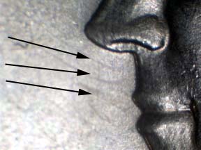 | Die Scratch from Nose | Die Gouge on 1 of Date | Reverse Designer's Initials | ||||||||||||||||