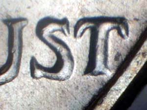 Description: Medium spread on eye, nose, chin, and designer's initials with light spread on IN GOD WE TRUST and date. Reported by: John A. Wexler Comments: BS. |