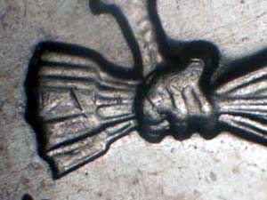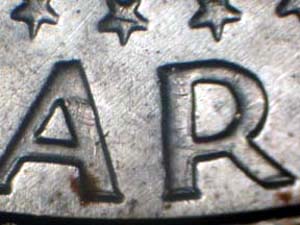 Description: Light spread on UNITED STATES OF AMERICA, HALF, and all the stars in the circle with the strongest at the top of the Reverse. Reported by: James Wiles Comments: |