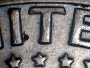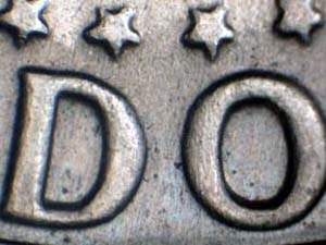 Description: Extra thickness on all stars in circle with some split serifs at the top. Reported by: James Wiles Comments: Obverse is ODV-003 and LISTED as DDO-004. Can be found in Mint Sets. FS-101. |