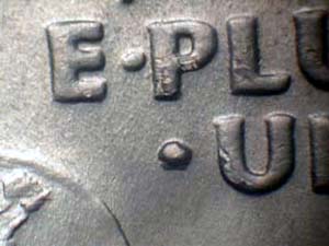 | Die Scratch from P of PLURIBUS to Earth | Die Gouge dot Left of the Middle of the E of ONE | Die Scratch from Lower T to Lower Y of LIBERTY | ||||||||||||||||||||||||