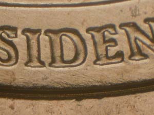 Description:Strong extra thickness on all rim lettering, eyes, nose, and beard. Reported by: Charlie Bodin Comments: ODV-023 (Benjamin Harrison). |